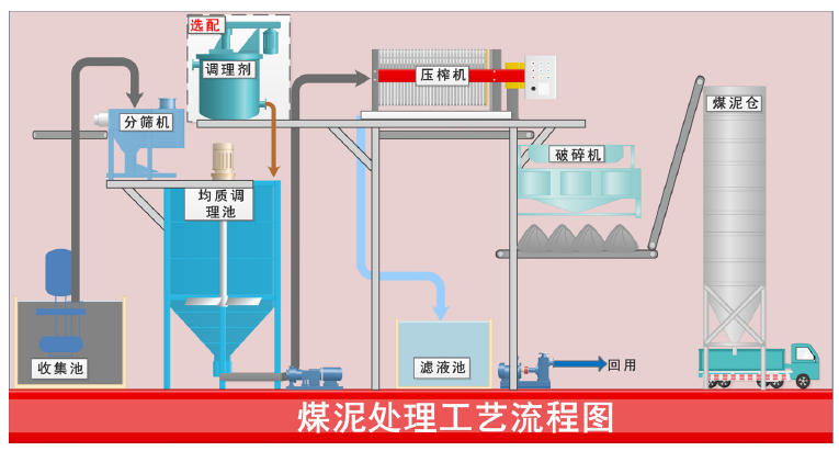 ◆工藝:煤泥污泥采用智能變腔超高壓壓榨機將污泥脫水至25%以下。脫水后煤泥粉碎,摻入精煤銷售。