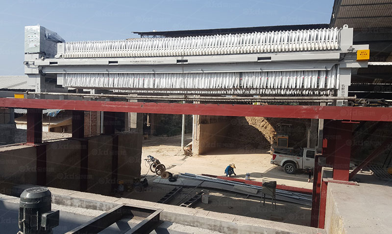 采用兩臺(tái)XMYZD1250-120pc 隔膜高壓壓濾機(jī),對(duì)原料土、砂等按比例配置,化漿后攪拌均勻制成原漿,通過(guò)壓濾機(jī)進(jìn)行壓濾脫水,壓濾后的泥餅可直接作為生產(chǎn)原料使用。