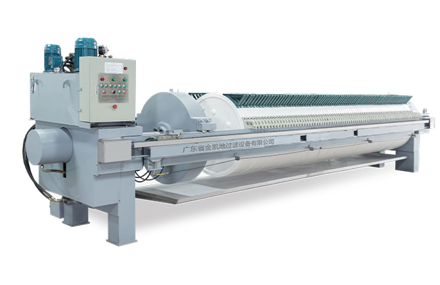 在污泥泵進泥壓力達到設定壓力值后,污泥泵自動停機,進泥閥自動關閉,壓榨機的液壓系統自動啟動,對進入濾腔的污泥進行二次壓榨,壓力高達65——110kg/cm2,濾室自動調節壓縮,使濾餅在高壓力壓榨下將濾餅中的大部水擠出
