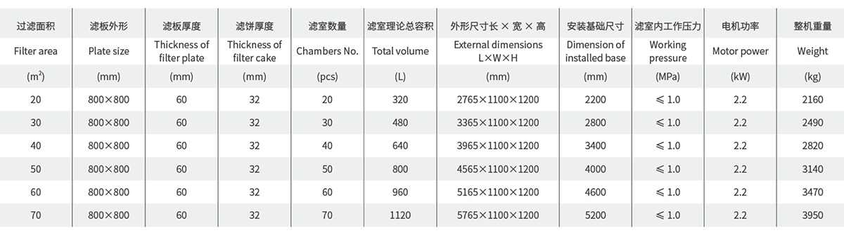 ③壓緊及松開濾板的動力裝置采用臺灣技術,一體化液電控制,采用知名品牌元件,確保經久耐用;
