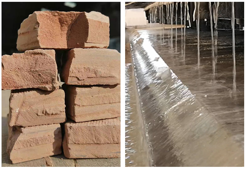 壓濾后的泥餅、流出的清水