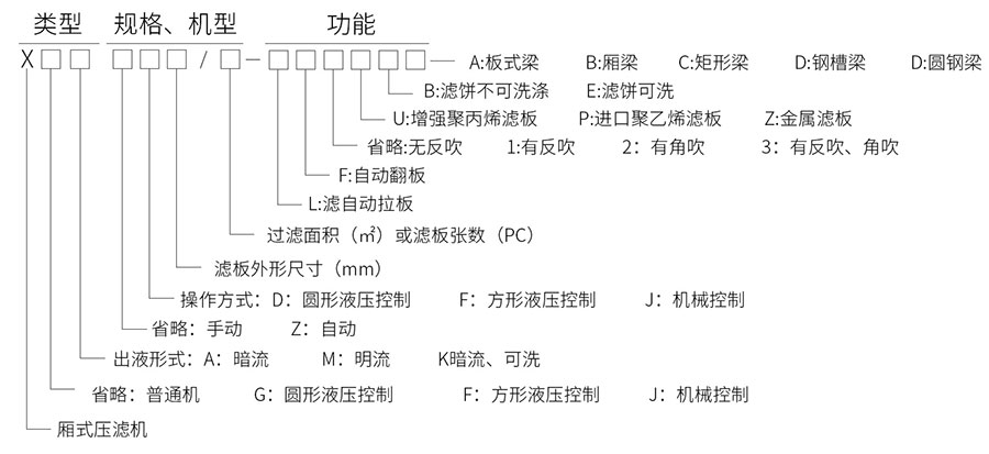 金凱地壓濾機廠家:壓濾機型號標注含義
