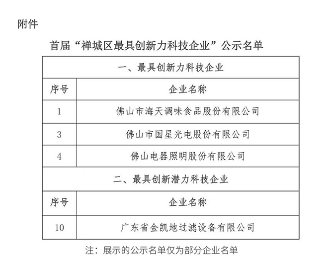 近日,佛山市禪城區(qū)經(jīng)濟和科技促進局舉辦首屆“禪城區(qū)最具創(chuàng)新力科技企業(yè)”評選活動,廣東省金凱地過濾設(shè)備有限公司憑著在企業(yè)創(chuàng)新條件、創(chuàng)新資源、創(chuàng)新價值、行業(yè)領(lǐng)導力、創(chuàng)新產(chǎn)出等方面的優(yōu)勢在初評中脫穎而出,并在復賽中在研發(fā)團隊、核心技術(shù)、市場模式、未來前景四個方面的評比中表現(xiàn)突出,獲評為“最具創(chuàng)新潛力科技企業(yè)”。